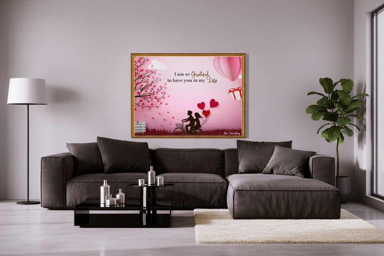 Celebrate love and gratitude with this inspiring framed art print from Mein Sohn Library. Featuring a romantic silhouette and heartwarming colors, this artwork captures the beauty of appreciation and companionship. Fully framed and ready to hang, it brings warmth and elegance to any room.